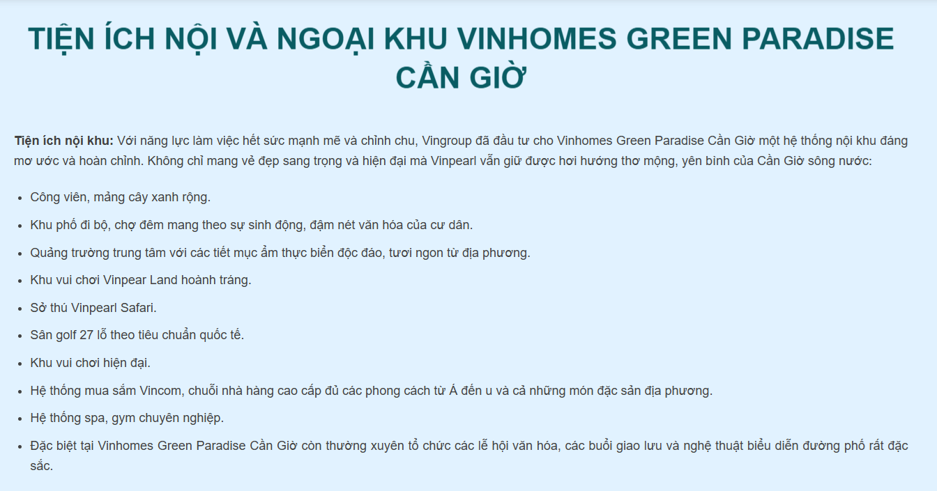 Hệ thống hạ tầng nổi bật xung quanh Vinhomes Green Paradise Cần Giờ