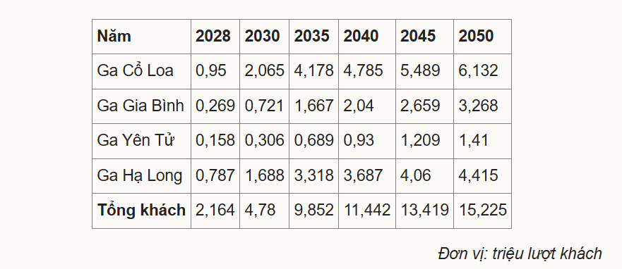 Dự báo lượng khách phục vụ trên đường sắt cao tốc Hà Nội - Quảng Ninh của VinSpeed: